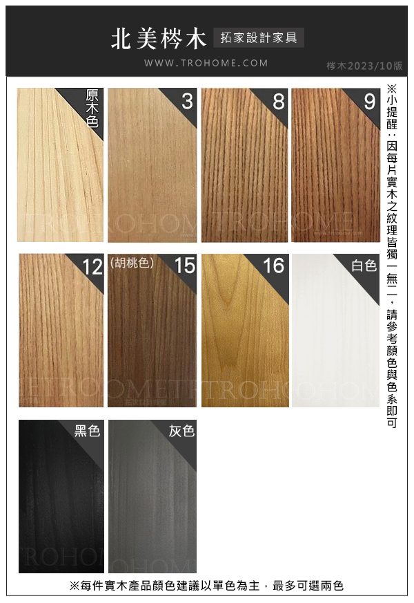 ▾ 因生長環境不同,每件實木產品之自然紋理、木結位置、吸色能力也將不盡相同,故每片實木都獨一無二、絕無僅有。