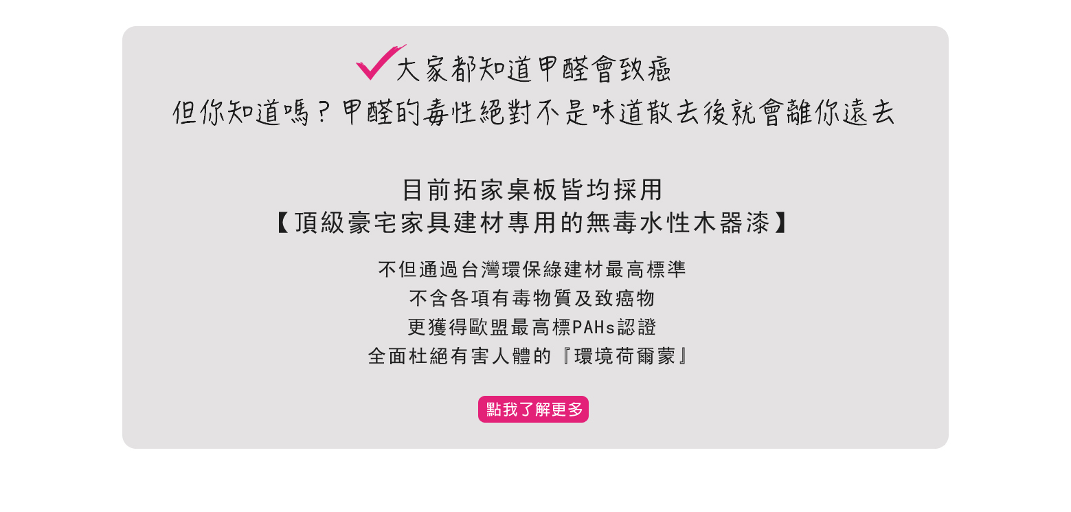 目前拓家餐桌桌板皆均採用