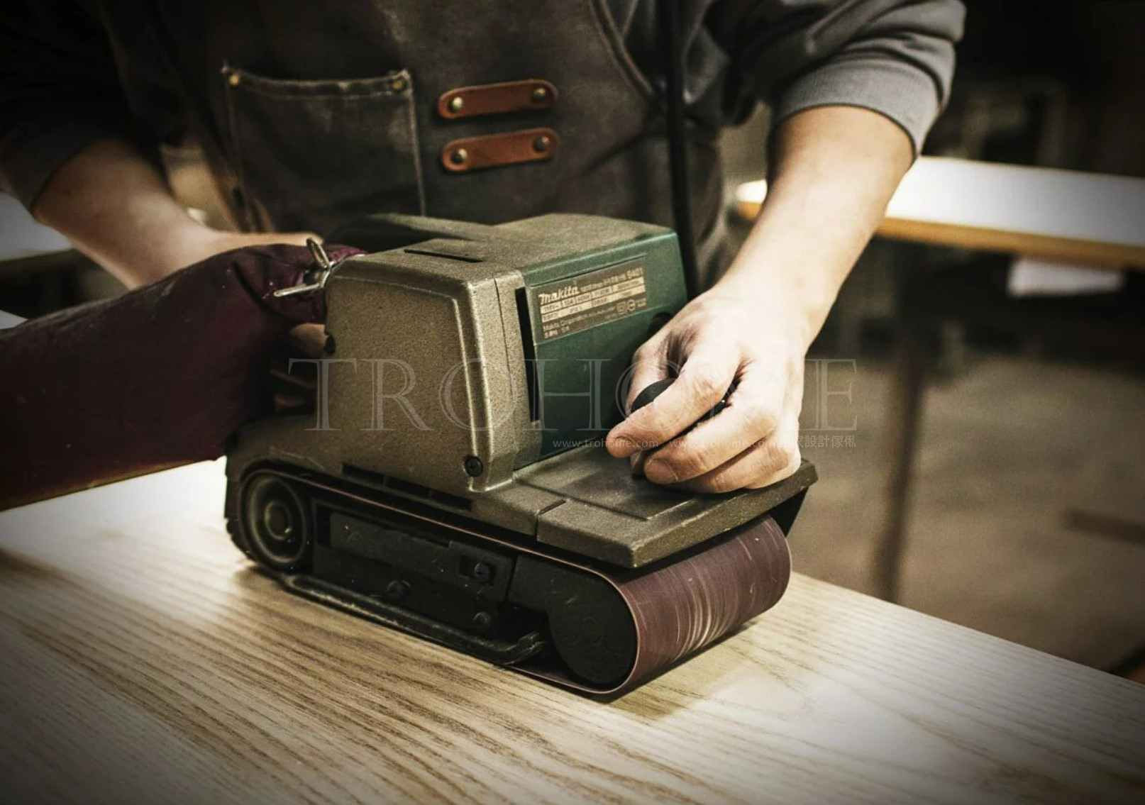 第一次粗磨,研磨實木表面,控制厚度。