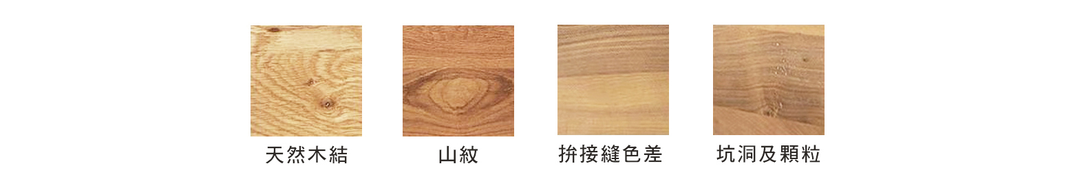 而自然產生不同的顏色深淺與木節多寡