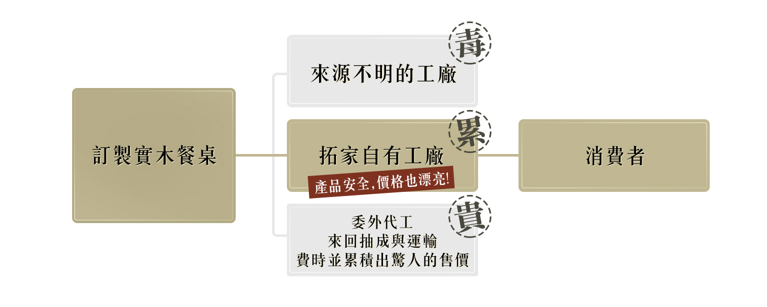 特點是在製成家具時,能充分展示材料的真實、厚重的自然美感。拓家的松木桌面板材,均是選用經多次篩選、較少木結、紋路較直,高等級的紐松板材。