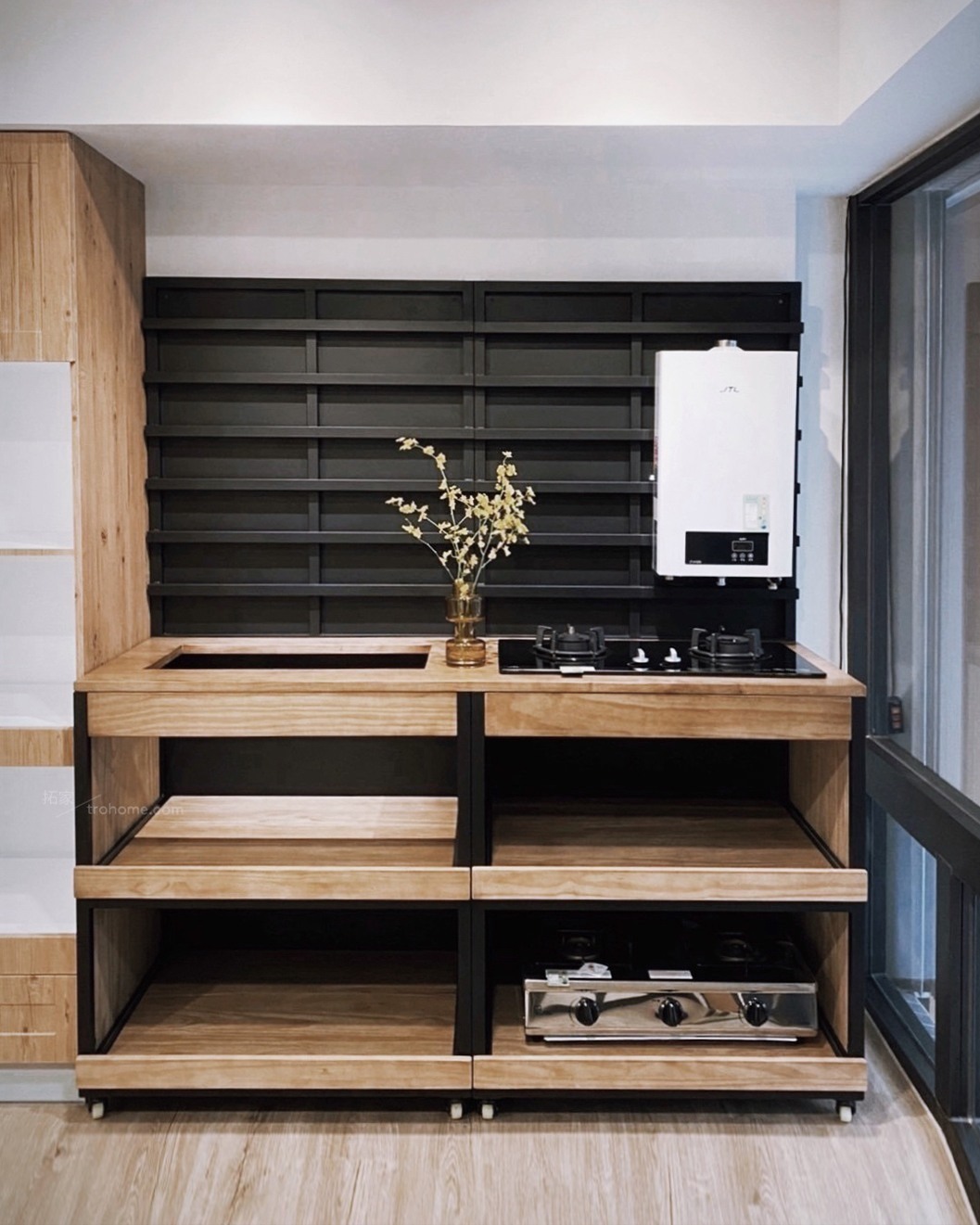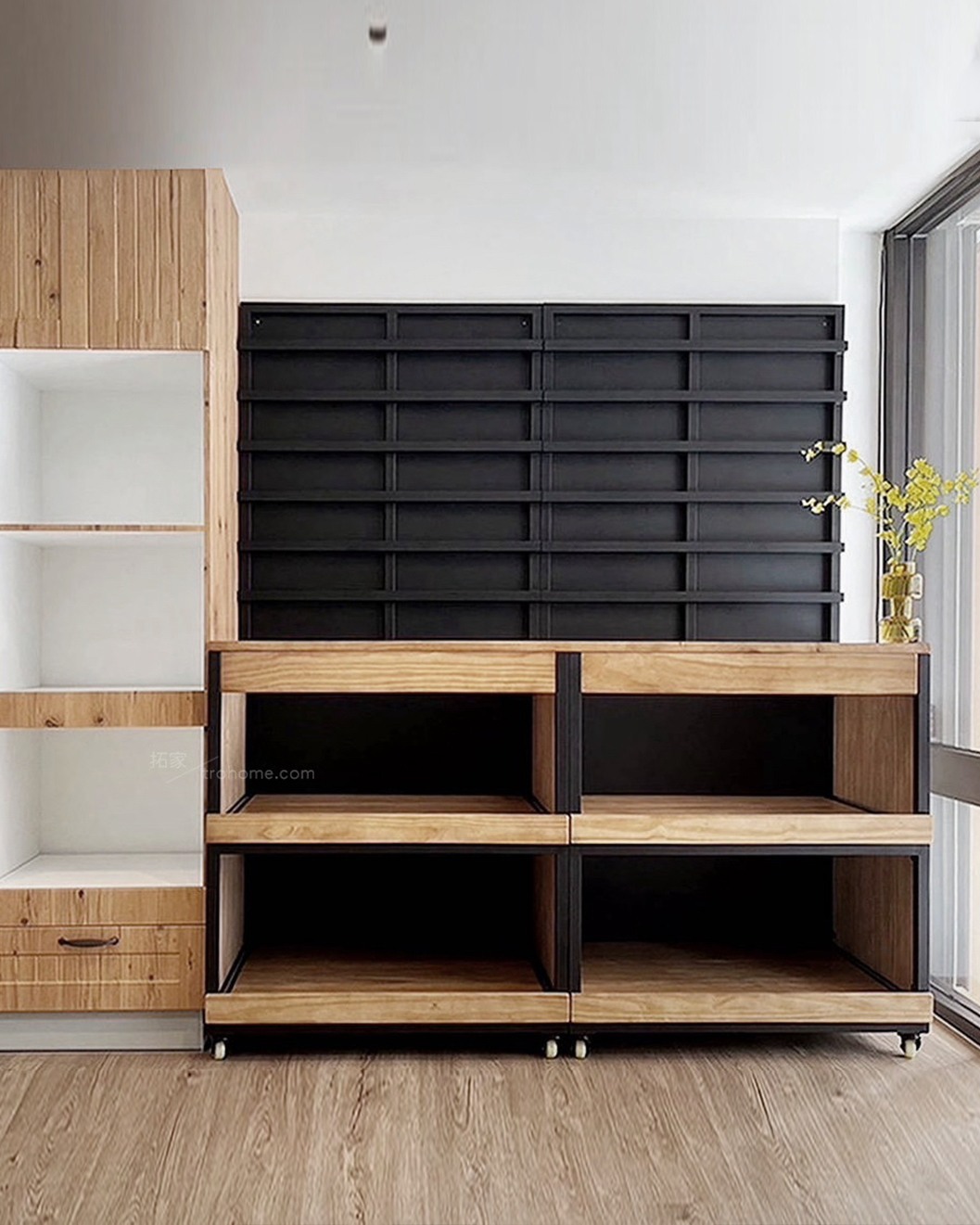 ✔️打破無聊的規格化的展示層架,結合木頭與鐵件也能很有設計感