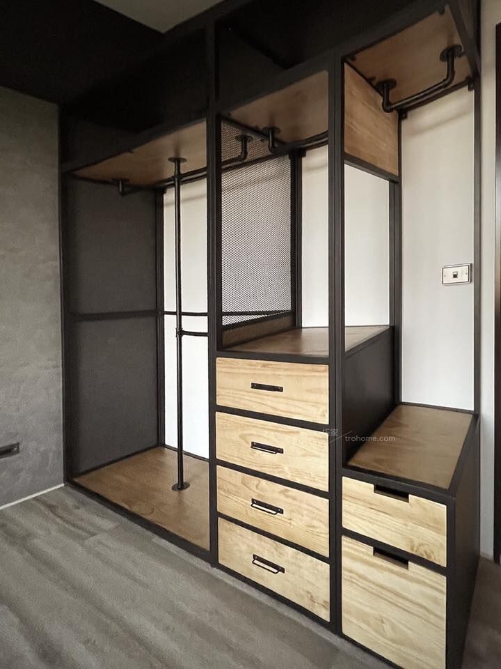 林先生選擇實木與鐵件的組合,