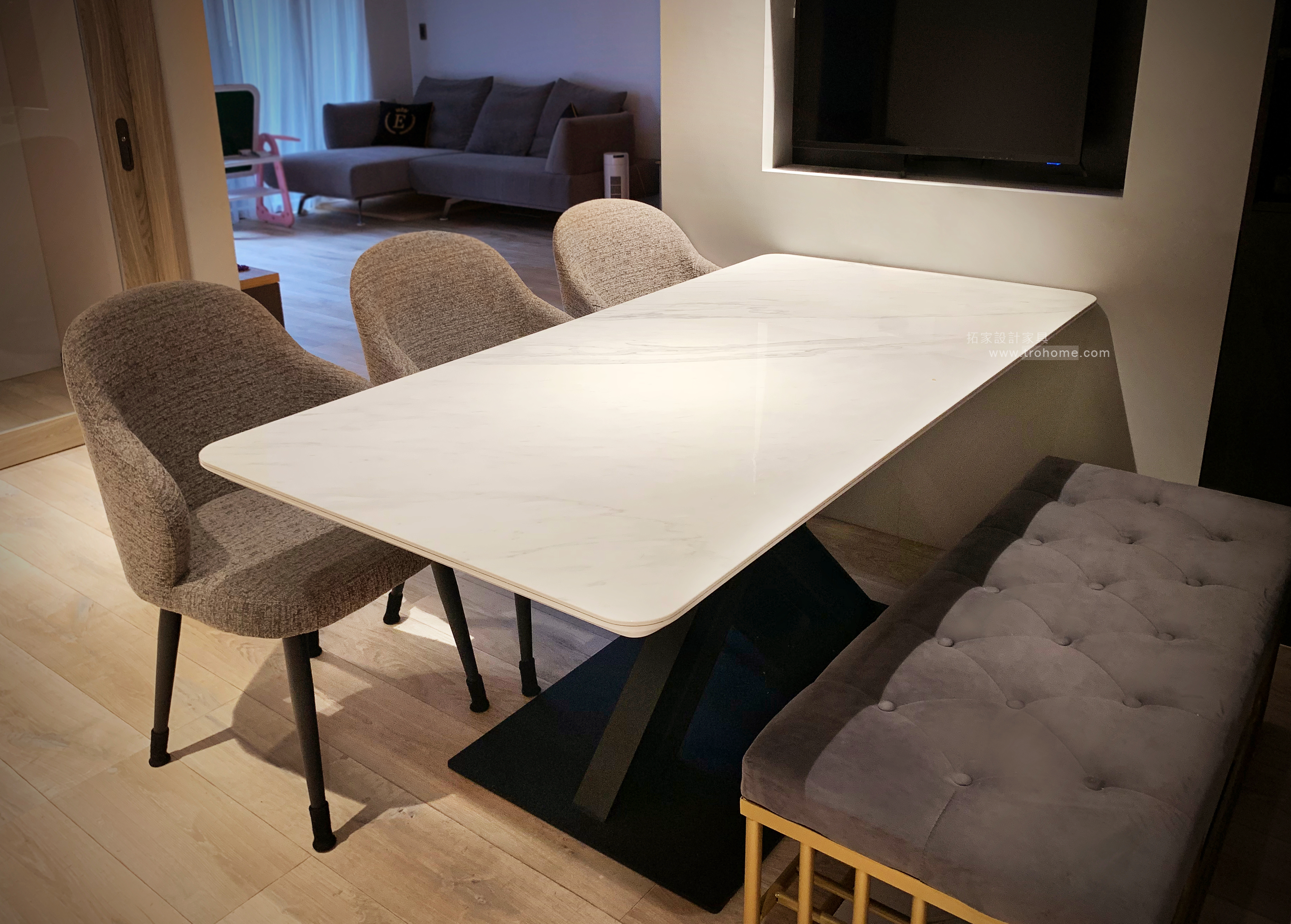 板材 : GLEM WHITE POLISHED亮面 / 桌腳 :實木秘境桌腳