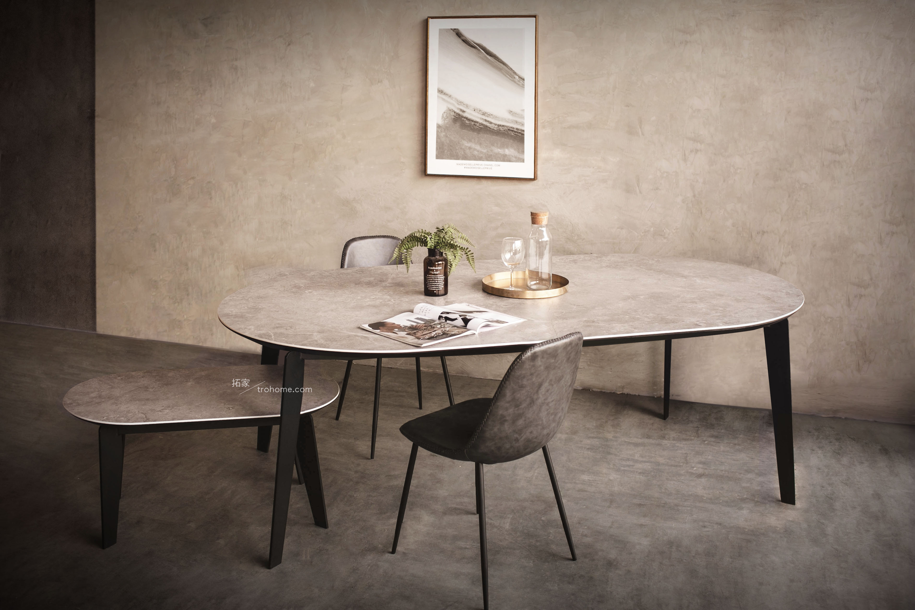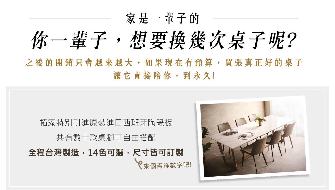 拓家的陶瓷板材,可依照你所需的餐桌尺寸進行裁切製作,並且剩下的餘料都是你的,可再訂製成各種檯面或小茶几,超划算!