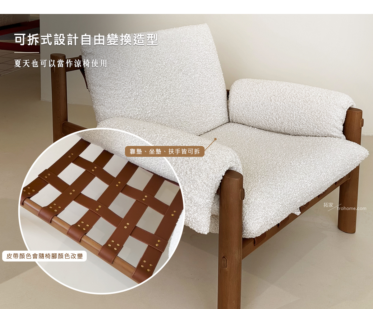 ※靠墊、扶手、坐墊都可拆,坐墊拿起來可以變成涼椅