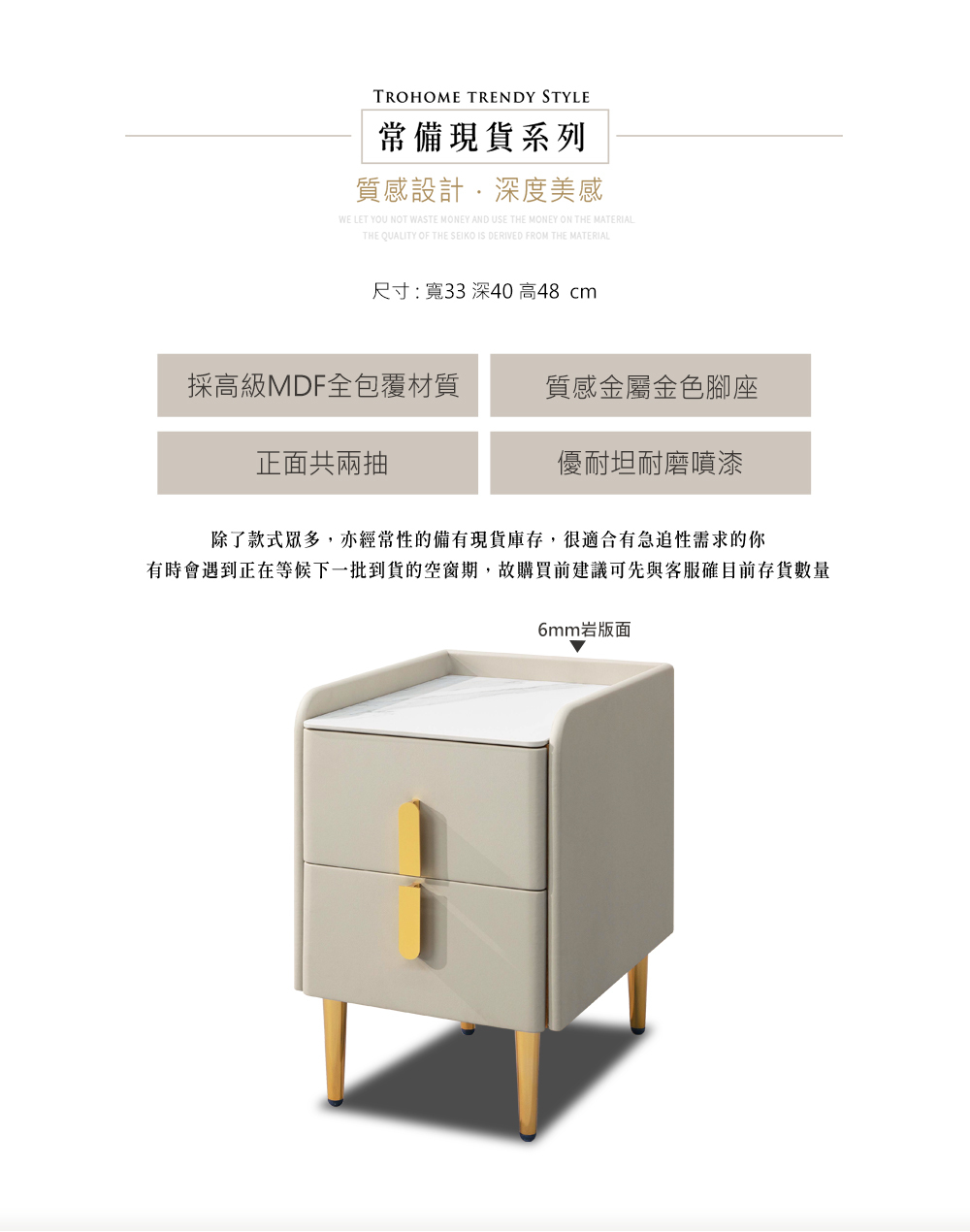 材質: 採高級MDF全包覆材質+質感金屬金色腳座