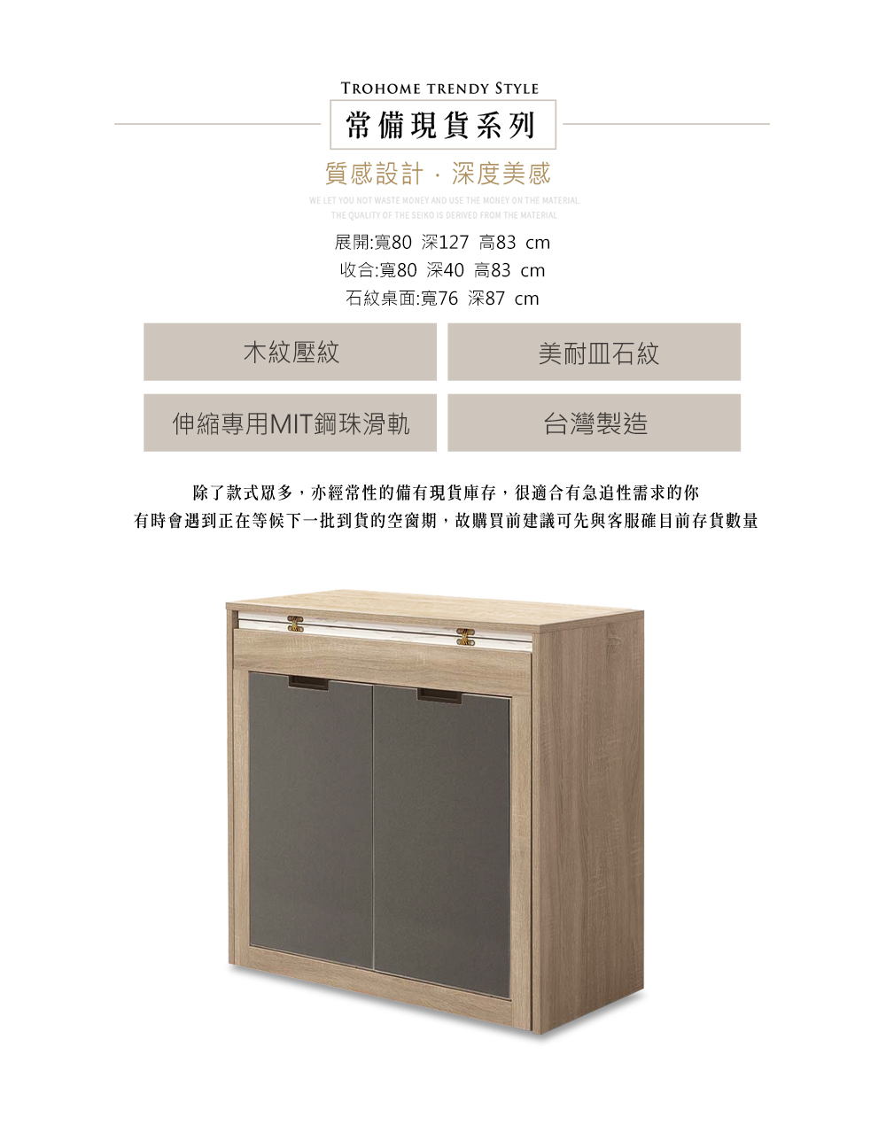 石紋桌面:寬76*深87
