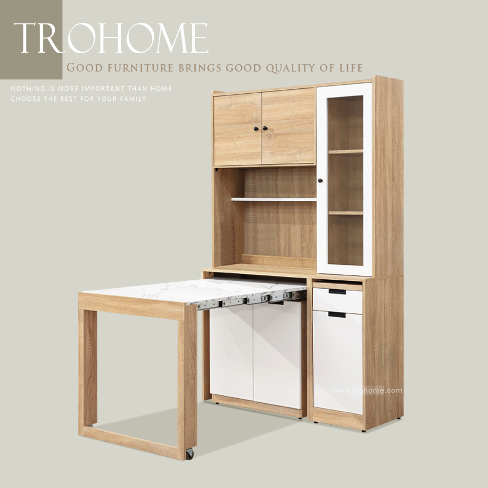 Ollie 美耐皿石紋白色功能桌收納櫃組