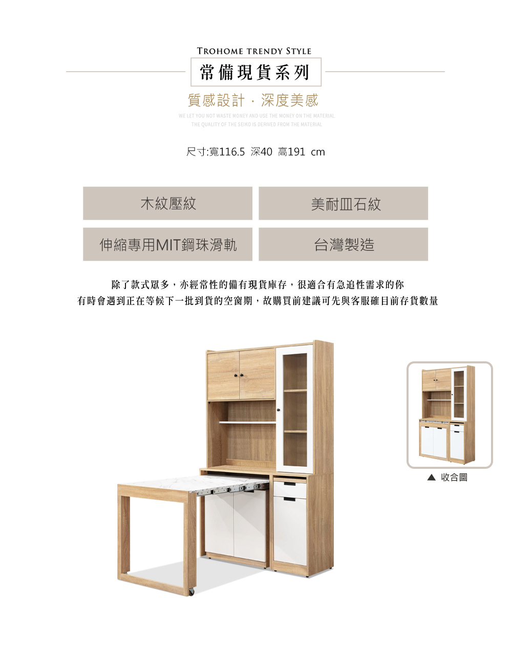 尺寸:寬116.5*深40*高191cm