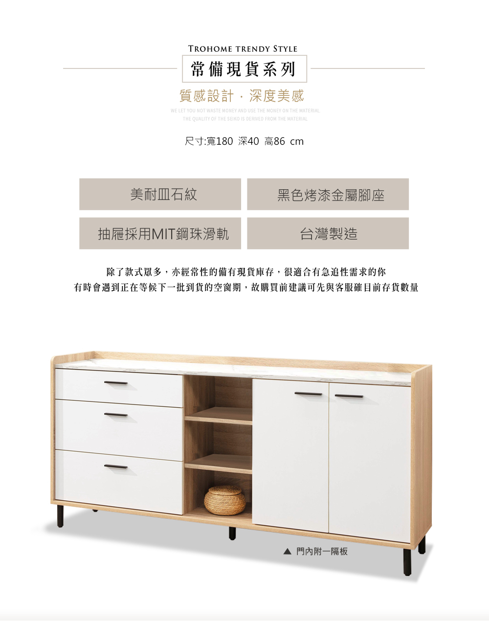 尺寸:寬180*深40*高86cm
