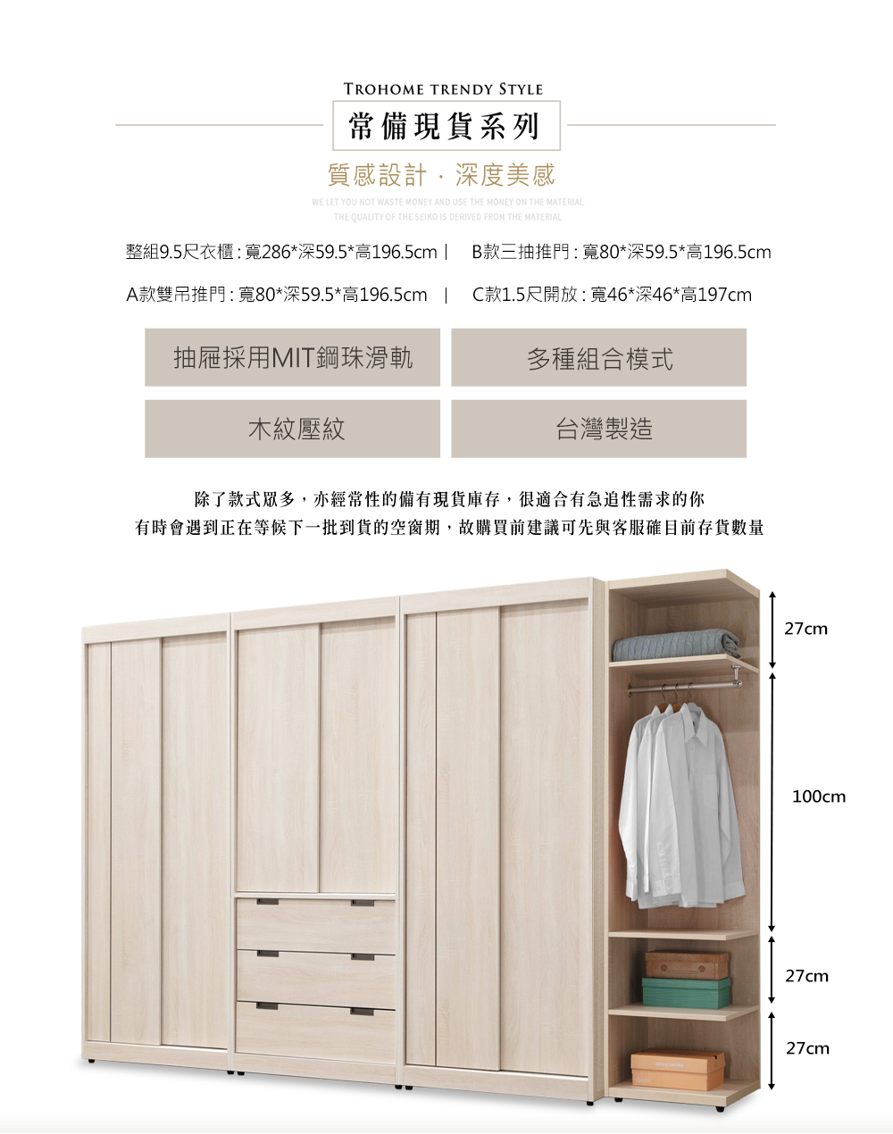 整組9.5尺衣櫃: