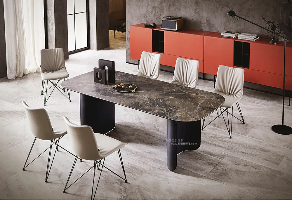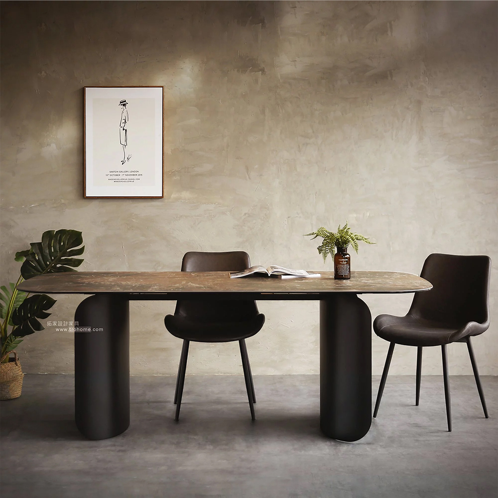 岩板桌面+鋼板桌腳