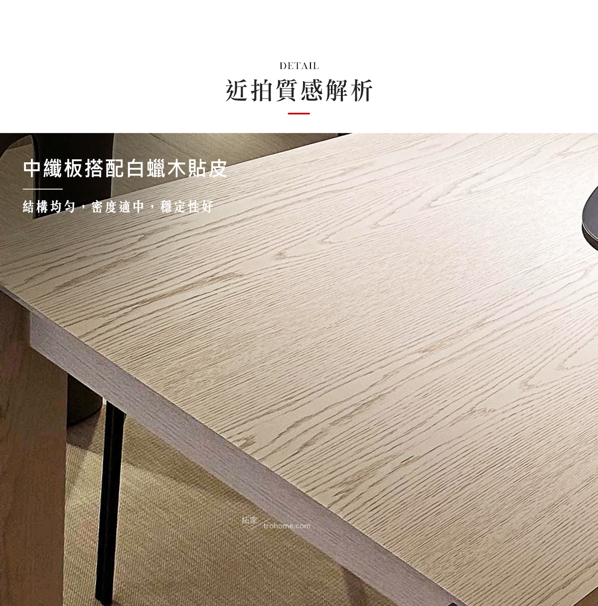 桌板 MDF中密度纖維板+白蠟木實木貼皮