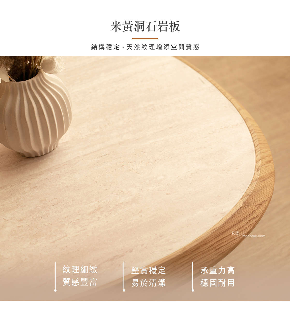 面板:內嵌米黃洞石岩板+邊緣實木貼皮