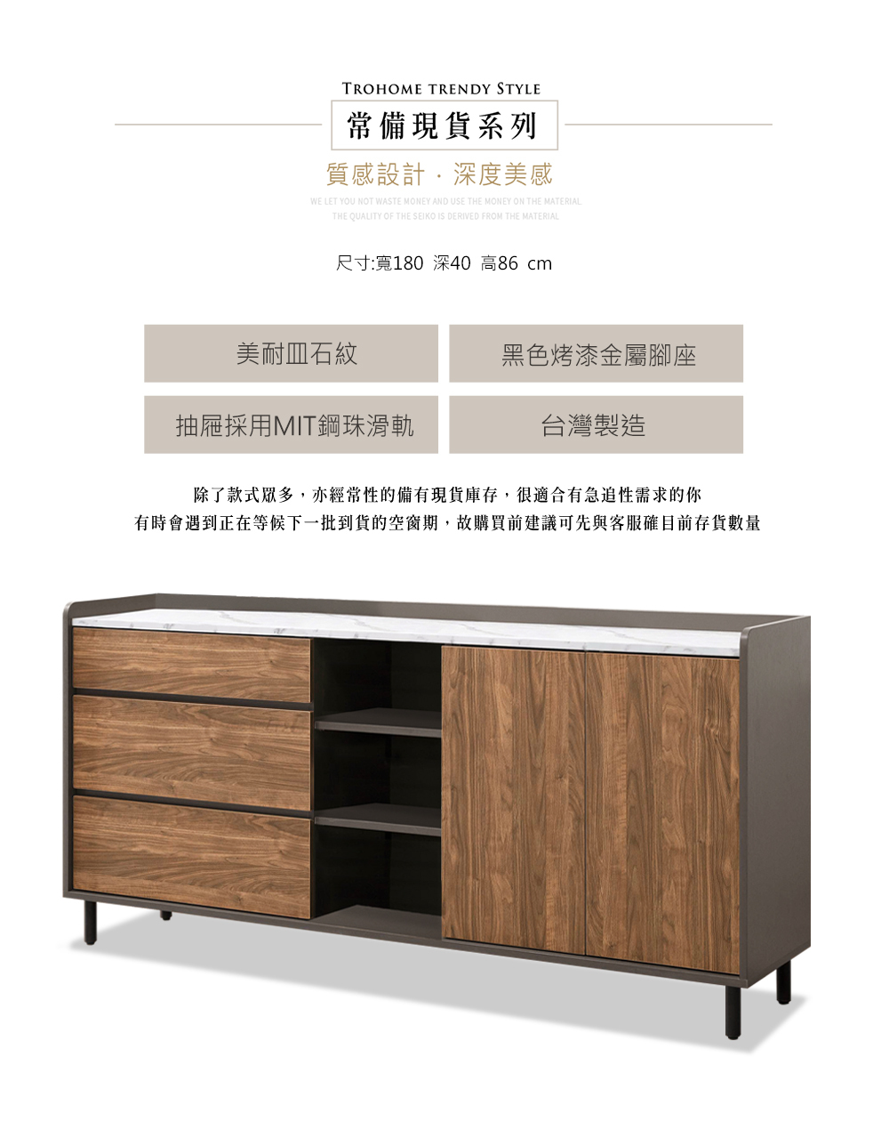 尺寸:寬180*深40*高86cm
